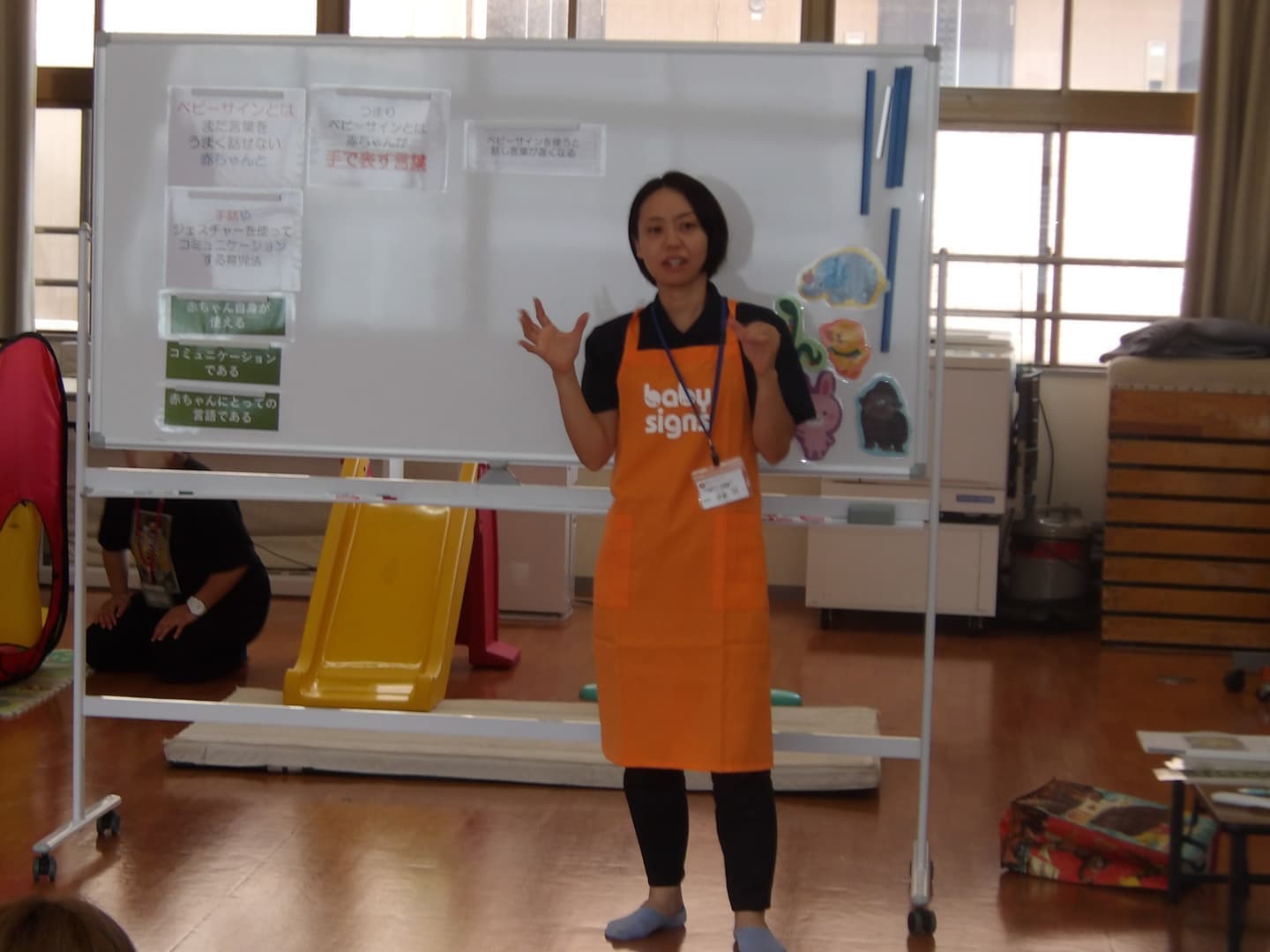 永興くじょう保育園の先生が来て、工作やベビーサインをしてくださいます。