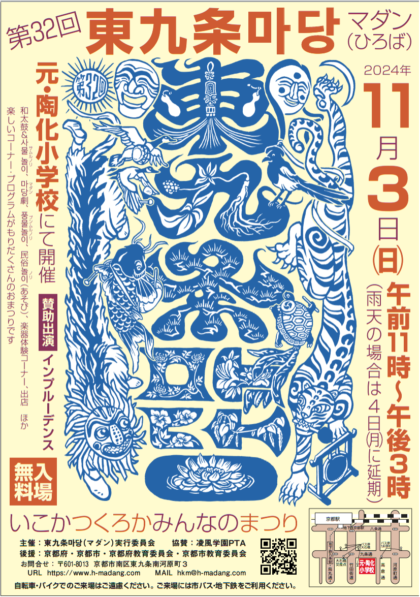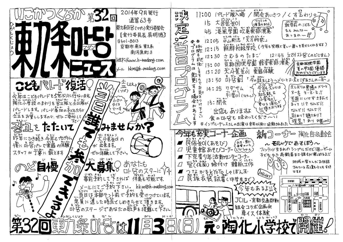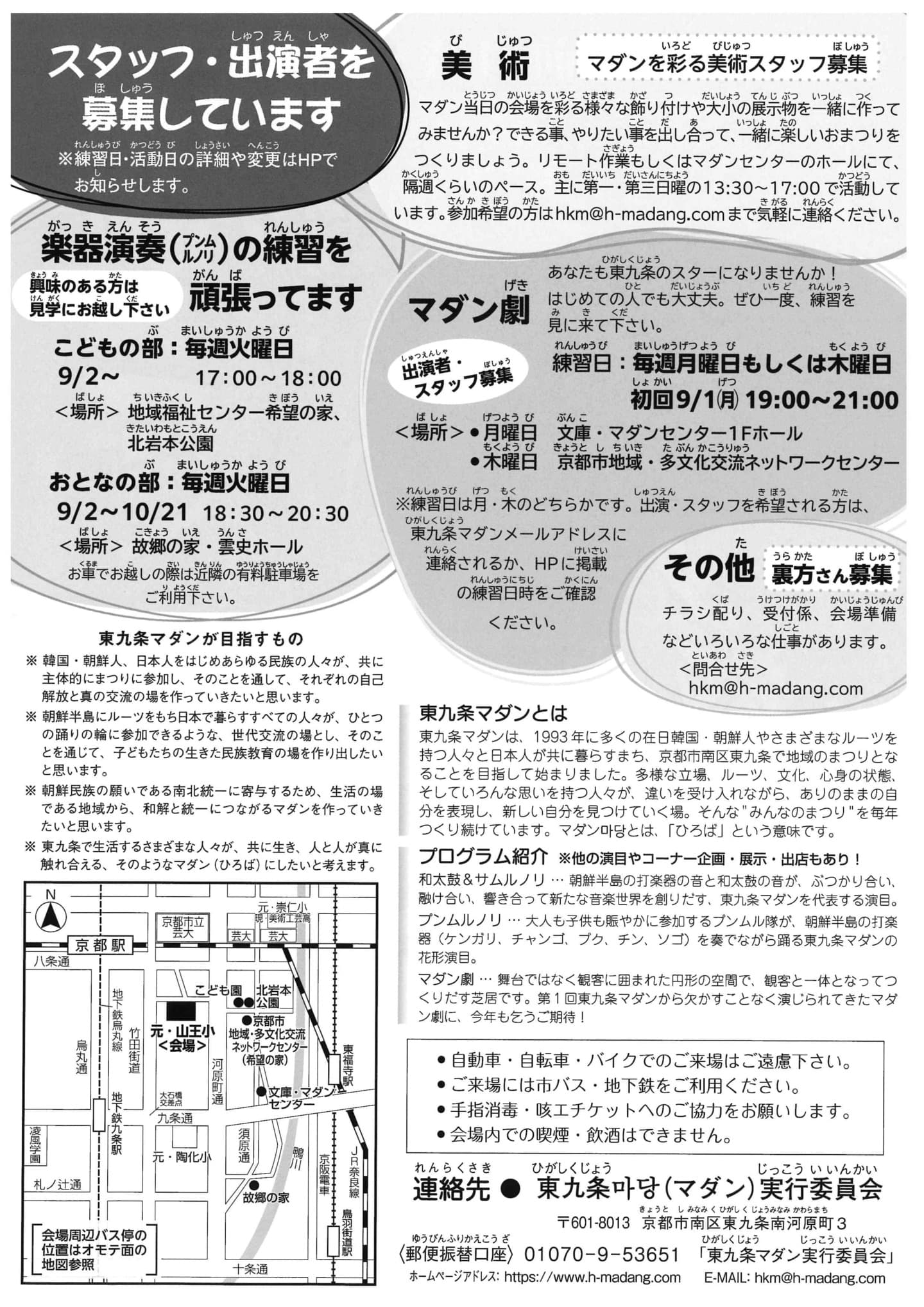 ステージ午後の部;●shinka三線&鼓命琉美エイサー ●堀川音楽高校クラシックギター(デュオシュシュ) ●京都国際学園ダンス部パートⅡ ●東九条マダン楽器演奏