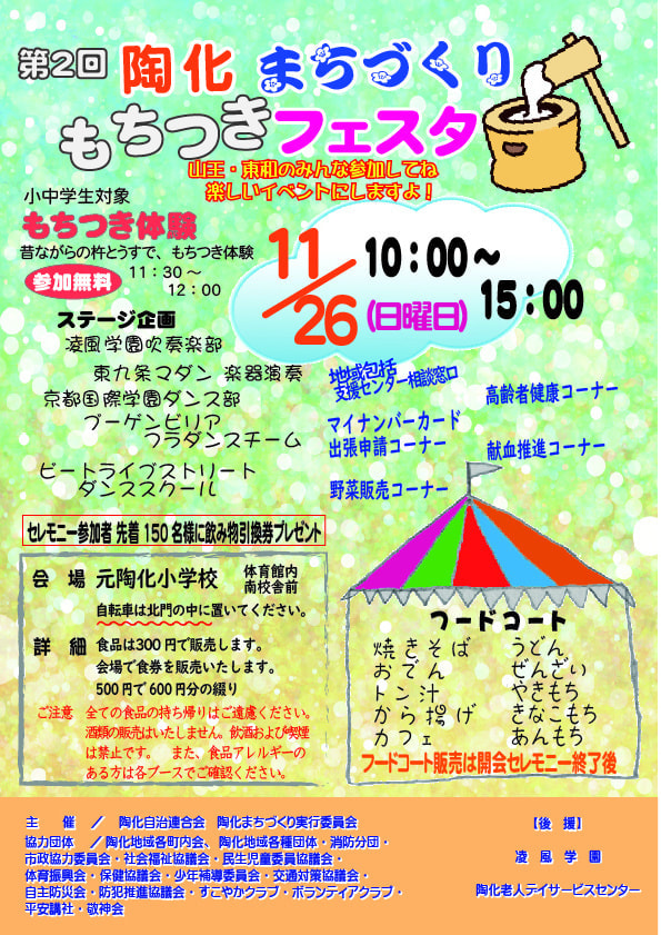 ステージ午前の部;●凌風学園吹奏楽部 ●ビートライブストリート ダンススクール ●ブーゲンビリア フラダンスチーム ●京都国際学園ダンス部