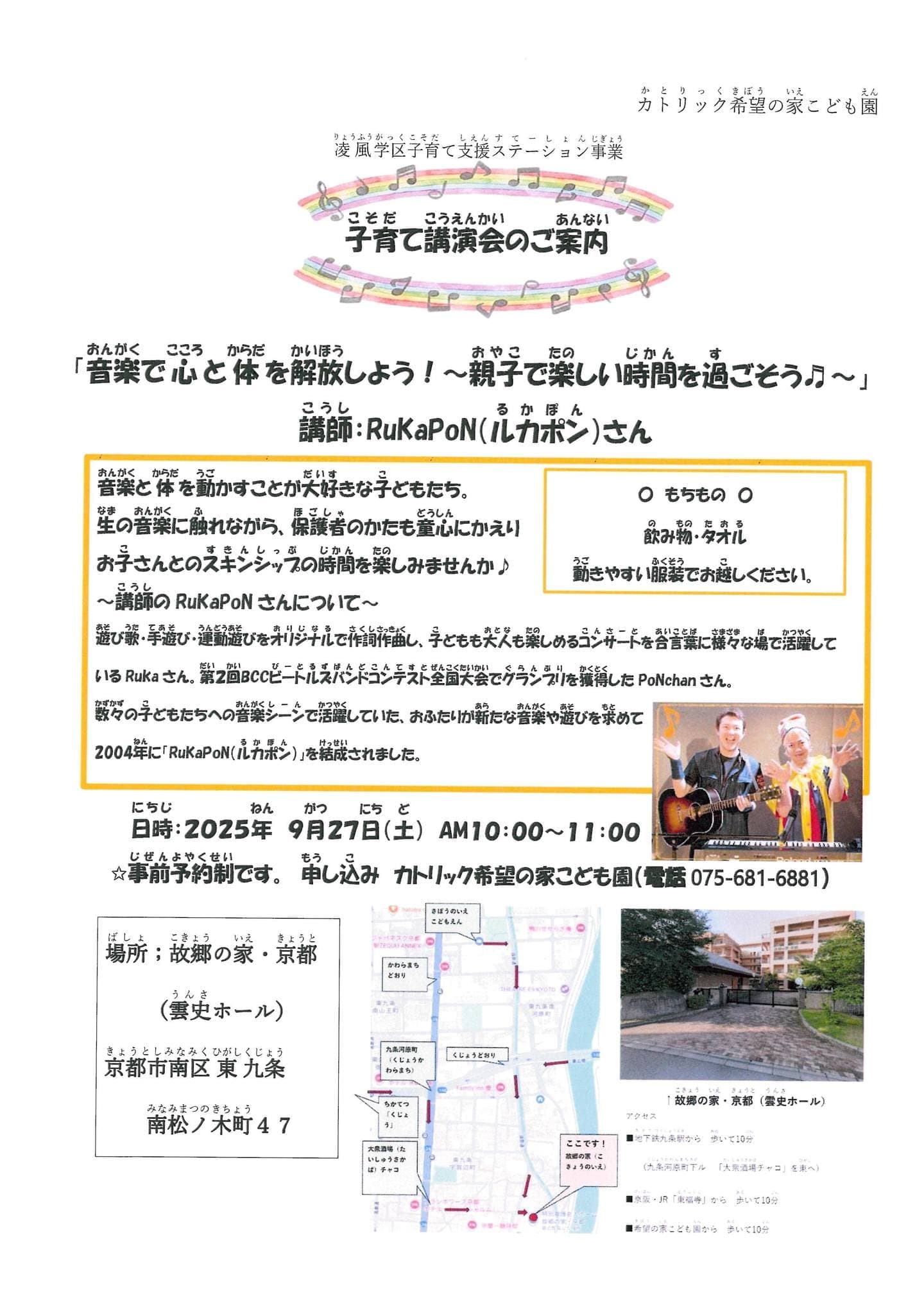 場 所:京都市地域・多文化交流ネットワークセンター(カトリック希望の家こども園の向かい)